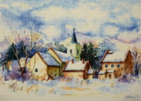 Torockói táj (pasztell, 35x50cm) Village landscape |